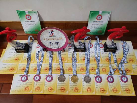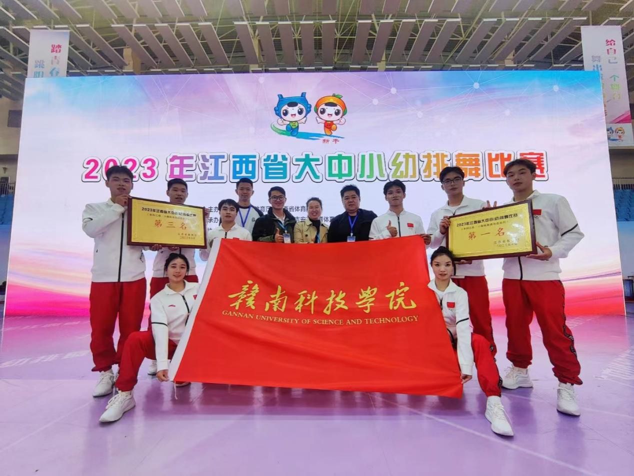 荣誉与成绩:我校体育健儿在各级各类比赛中频传佳音。2022年第四届赣州市体育舞蹈锦标赛中获得12金;2023年江西省体育舞蹈锦标赛中获得7金2银1铜;2023年的江西省大中小幼排舞比赛中,我校获得第一名1项、第三名1项、第四名2项;在江西省第十六届运动会比赛中,游泳比赛获得1金1银7铜、高校组团体总分全省第四,体育舞蹈比赛获得4金5银5铜、高校组团体总分全省第一,羽毛球比赛全省第7名、第8名各一个的好成绩;2024年在排舞、游泳等各类省级竞赛中共获得一等奖10项,二等奖7项,三等奖9项的优异成绩。在比赛场上展示我校大学生奋勇拼搏的精神,展示了赣科体育健儿的熠熠风采。