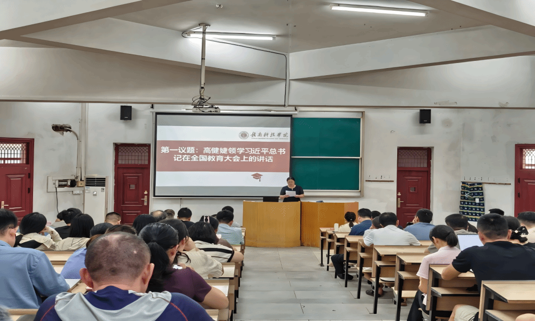 会上,高健婕领学“习近平总书记在全国教育大会上的重要讲话”。全体教职工集中学习了习近平总书记关于师德师风的重要论述摘编、《新时代高校教师职业行为十项准则》及学校师德师风建设相关文件。高健婕强调:“评价教师队伍素质的第一标准是师德师风,全院教师要深刻领会‘以德立身、以德立学、以德施教’的核心要义,将高尚师德融入教书育人全过程。”