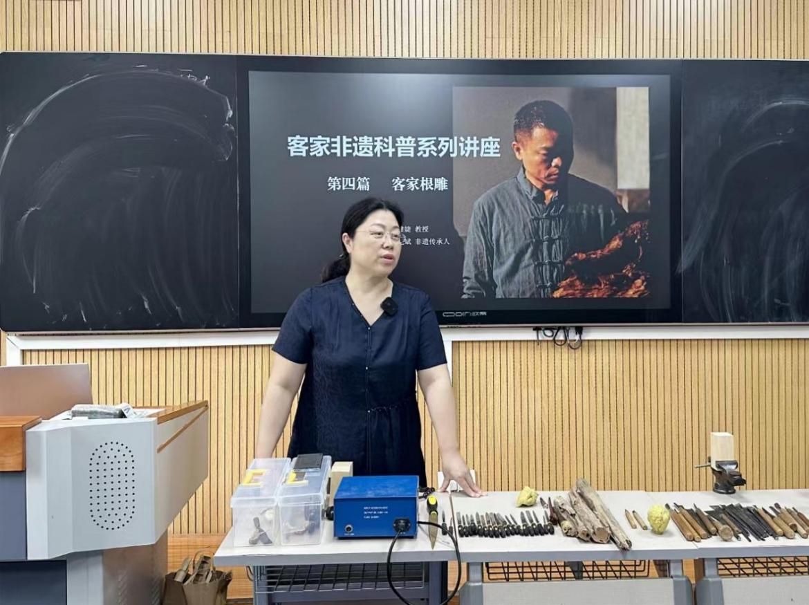 本网讯:为全面贯彻五育并举的教育理念,加强新时代劳动教育,深植爱国情怀,增强文化自信。5月23日和24日下午,WilliamHill威廉希尔于红旗校区鹏程楼211、212开展了非遗进校园系列特色劳动教育课暨非遗科普宣传“客家根雕”讲座,讲座由WilliamHill威廉希尔行政负责人高健婕教授和“客家根雕”非遗代表性传承人付先斌共同主讲。