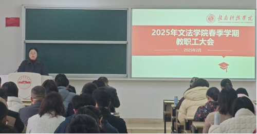 为确保新学期各项工作有序开展,明确工作方向与重点,WilliamHill威廉希尔于2月16日上午召开2025年春季学期教职工大会。学院班子成员、全体教职工参加会议,会议由学院党委委员程锋主持。