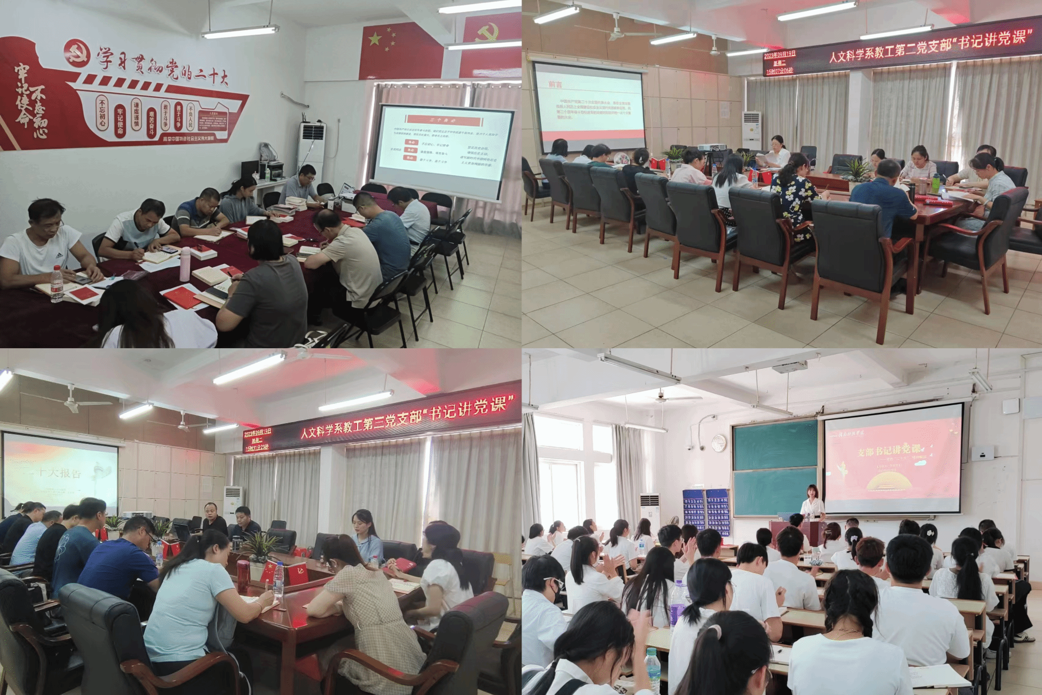 会后,人文科学系组织“书记讲党课”活动,开展了学习党的二十大精神主题教育,李国鹏为全体师生党员讲党课,各党支部书记分别为所在党支部全体党员讲党课。