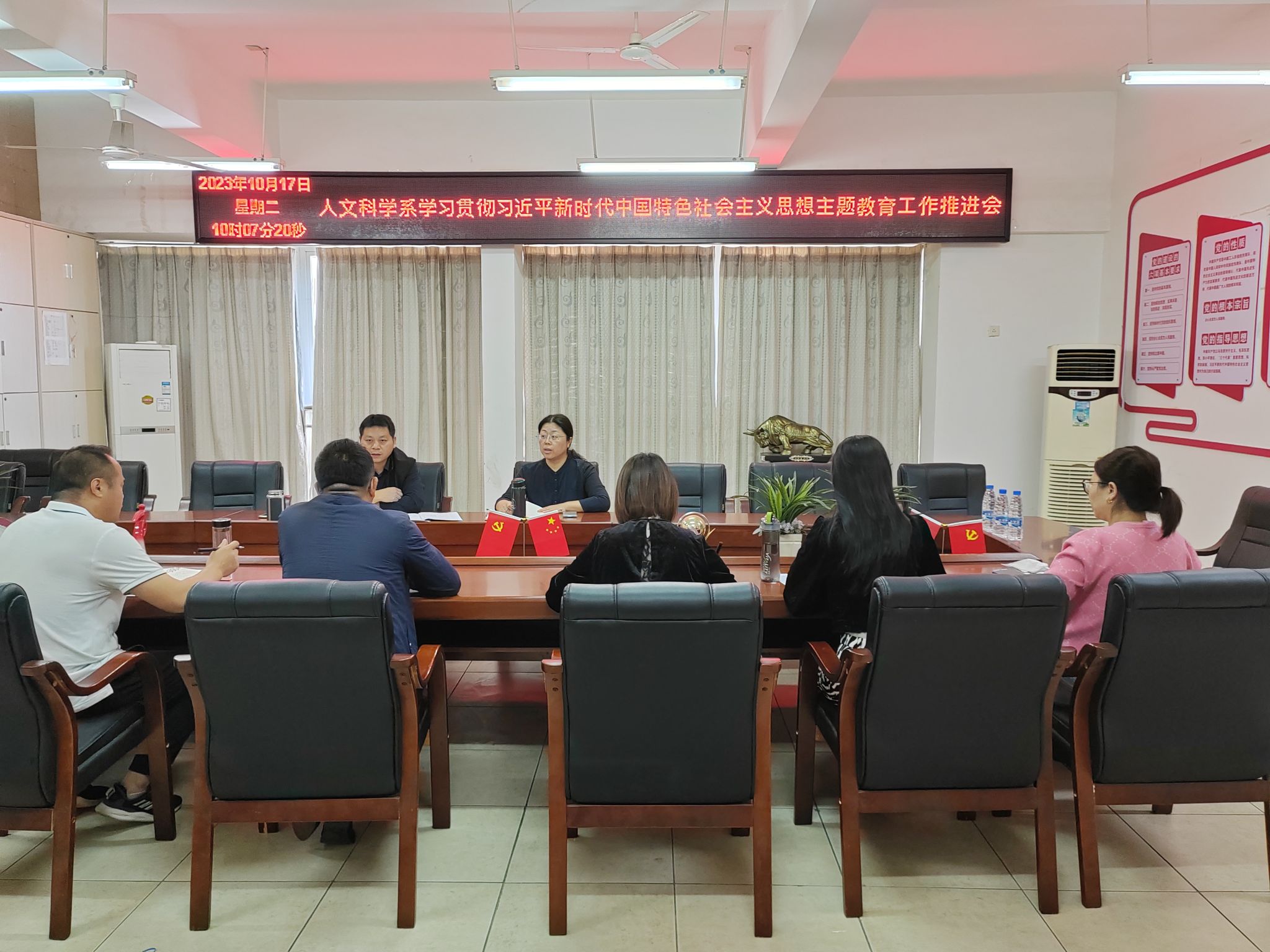 为进一步推动学习贯彻习近平新时代中国特色社会主义思想主题教育走深走实,10月17日,人文科学系召开学习贯彻习近平新时代中国特色社会主义思想主题教育工作推进会。人文科学系党总支委员、各党支部书记、党建组织员参会,李国鹏主持会议。