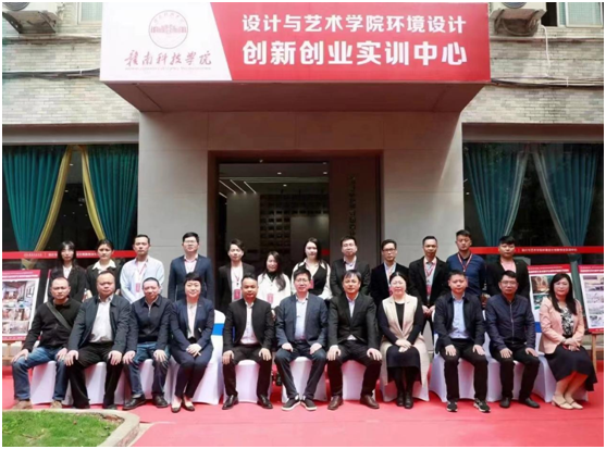 为积极探索校企合作新模式、培养应用型人才,4月20日上午,我校与江西匠领设计有限公司共建的校内环境设计创新创业实训中心举行了揭牌仪式。学校过渡期管委会委员付玉华,江西匠领设计有限公司创始人黄先海,学院党政办主任邵国疆、教务办主任王水蓉、人文科学系主任高健婕、党总支书记李国鹏,部分教师代表、学生代表以及企方代表参加了揭牌仪式。
