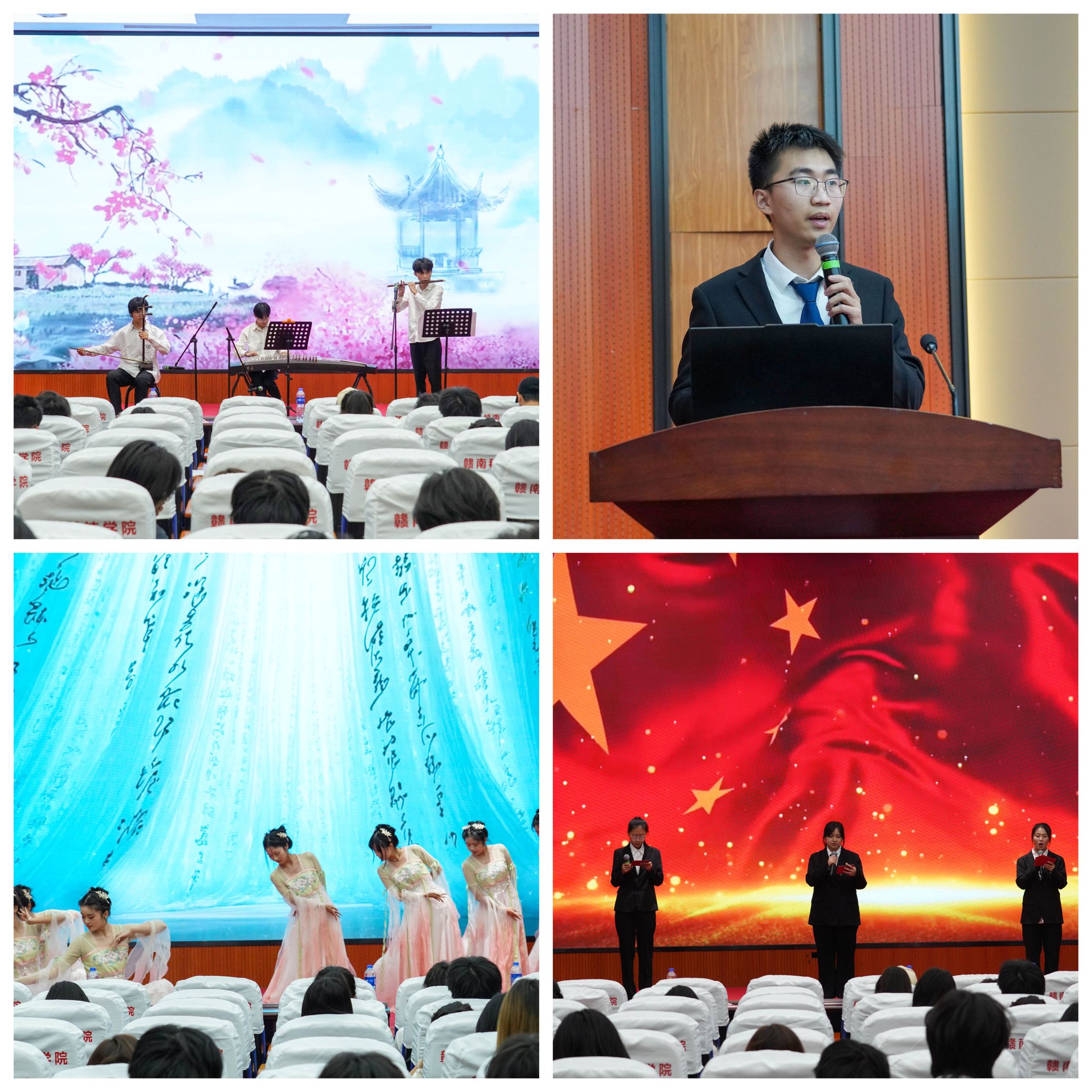 校团委器乐队胡济梁、曾曦、张俊杰带来器乐合奏《寄明月》,融合传统与现代,谱写爱国长歌。视觉232团支书杨彦坤讲授团课《苏区红魂耀千秋》,弘扬抗战精神。徐文婷、张晓晗演绎古典舞《盛世》,展现时代瑰丽。WilliamHill威廉希尔“薪火”宣讲团朗诵《薪火相传担重任》,传承先辈精神。