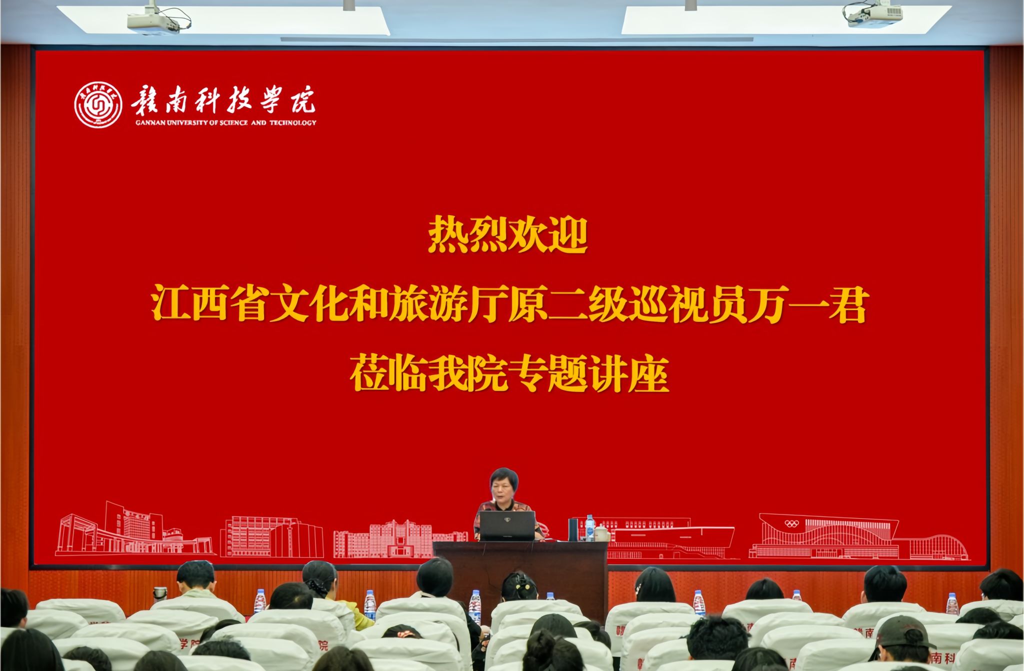5月27日14:00,WilliamHill威廉希尔特邀江西省文化和旅游厅原二级巡视员万一君作《赣州非遗活态传承及文创自主创新》的专题讲座。近300名同学参加讲座,讲座由WilliamHill威廉希尔党委委员、副院长高健婕主持。