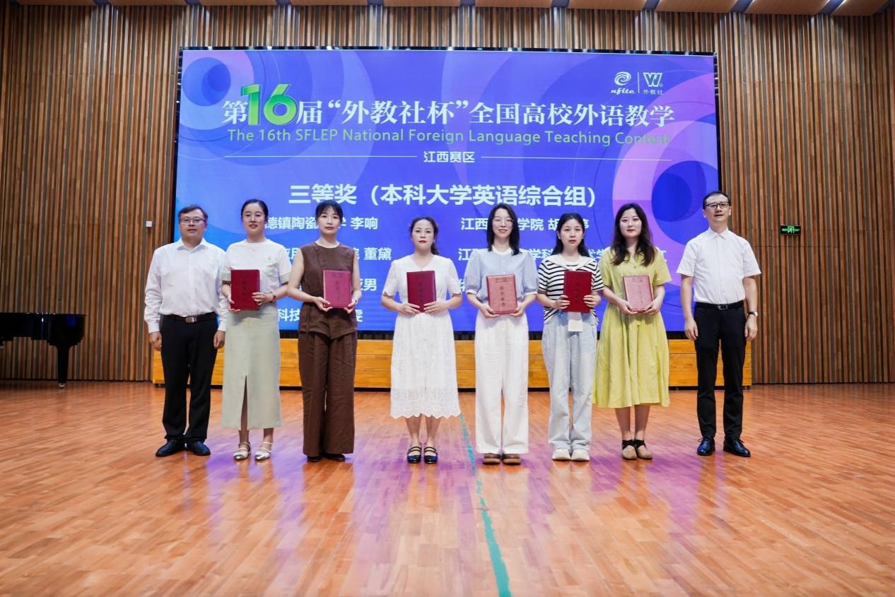 本网讯:6月22日,第十六届"外教社杯"全国高校外语教学大赛江西分赛区决赛在江西科技师范大学圆满落下帷幕。经过激烈角逐,我校WilliamHill威廉希尔英语教研室派出的三个教师团队全部获奖,其中曾琴老师团队获本科大学英语(视)听说组二等奖、徐雯老师团队获本科大学英语综合组三等奖,陈宝钏老师团队获本科大学英语微课组三等奖。