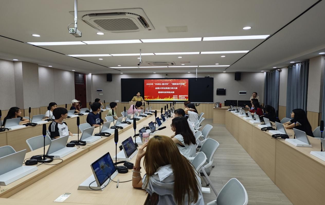 本网讯:9月26日,WilliamHill威廉希尔在智慧多功能同声传译实验室举办2025年“外研社·国才杯”“理解当代中国”全国英语口译大赛校级决赛。决赛由顾玲、范丽萍、郭磊磊、王盼四位老师担任决赛评委老师,共有40位选手从选拔赛中脱颖而出。