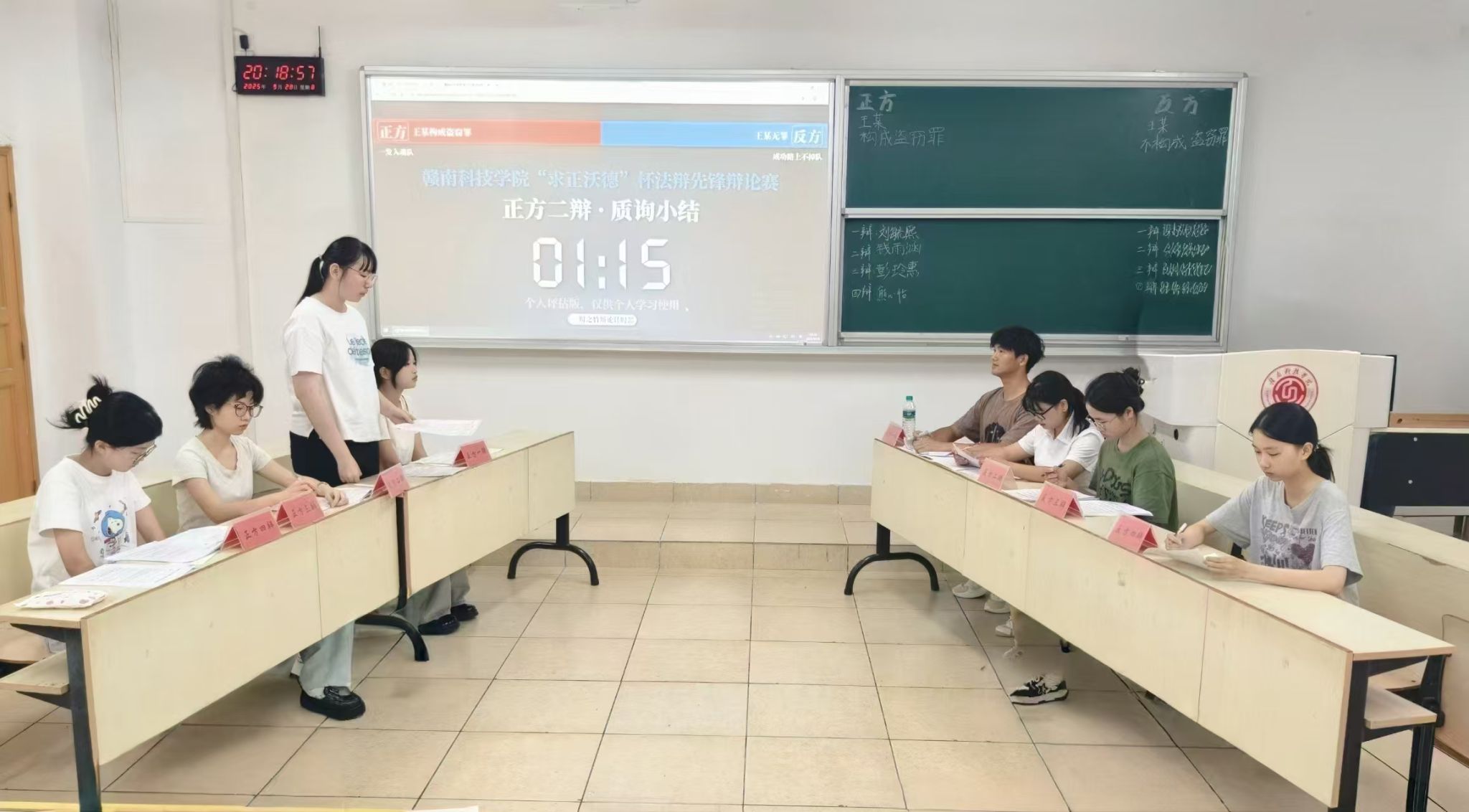本网讯:9月28日晚上,我校普法社、演讲与辩论协会联合江西求正沃德(赣州)律师事务所,共同举办“求正沃德”杯法辩先锋辩论赛初赛。来自法学专业的16支参赛队伍围绕民生法律热点展开激烈交锋,以专业思辨展现青年学子的法律素养与逻辑风采。
