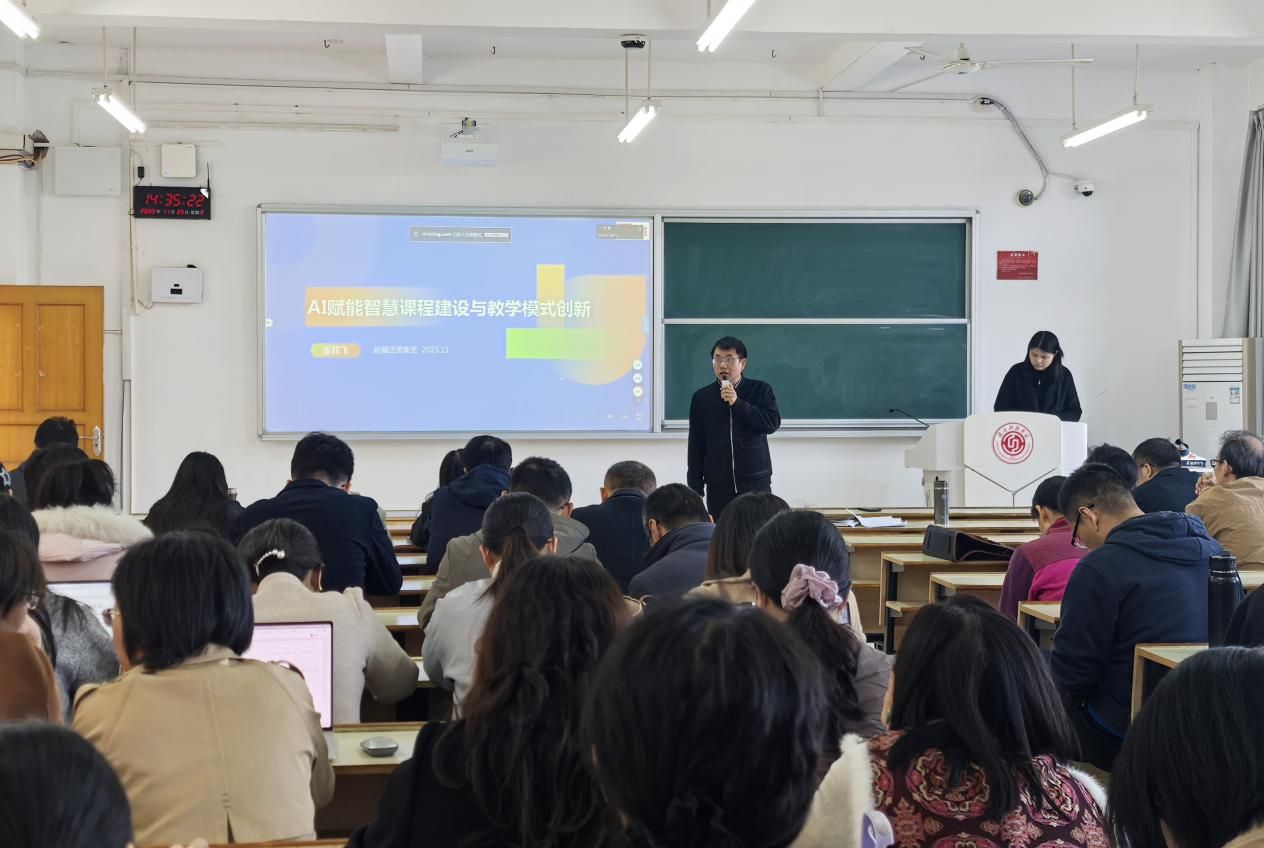 讲座由教学主任何建军主持。他指出AI不再是遥远的工具,而是能够实现个性化学习路径规划、智能内容生成与即时反馈的“教学伙伴”。这一趋势要求教师必须更新教学理念,并希望教师能够总结凝练出具有创新性和推广价值的教学模式。