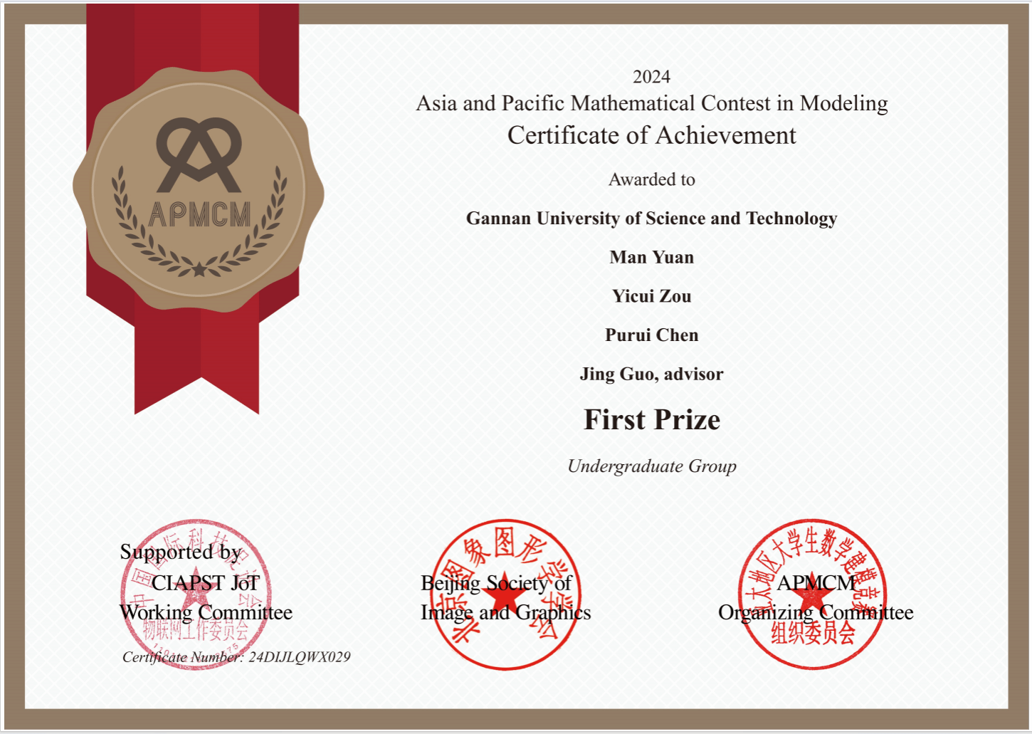 近日,第十四届亚太地区大学生数学建模竞赛公布了获奖名单,我校喜获佳绩。此次比赛于2024年11月21日正式开赛,竞赛时间为4天,比赛旨在进一步普及数学建模知识,锻炼当代大学生在信息化社会发现问题、分析问题以及解决问题的逻辑思维能力。亚太地区大学生数学建模竞赛是由中国国际科技促进会物联网工作委员会和北京图象图形学学会联合主办的亚太地区大学生学科类竞赛,竞赛由亚太地区大学生数学建模竞赛组委会负责组织。本次竞赛共有980所高校2万7千多名学生报名参赛。参赛高校覆盖北京大学、清华大学、浙江大学、同济大学、上海交通大学、复旦大学、四川大学、大连理工大学等全部的39所985高校和114所211高校。