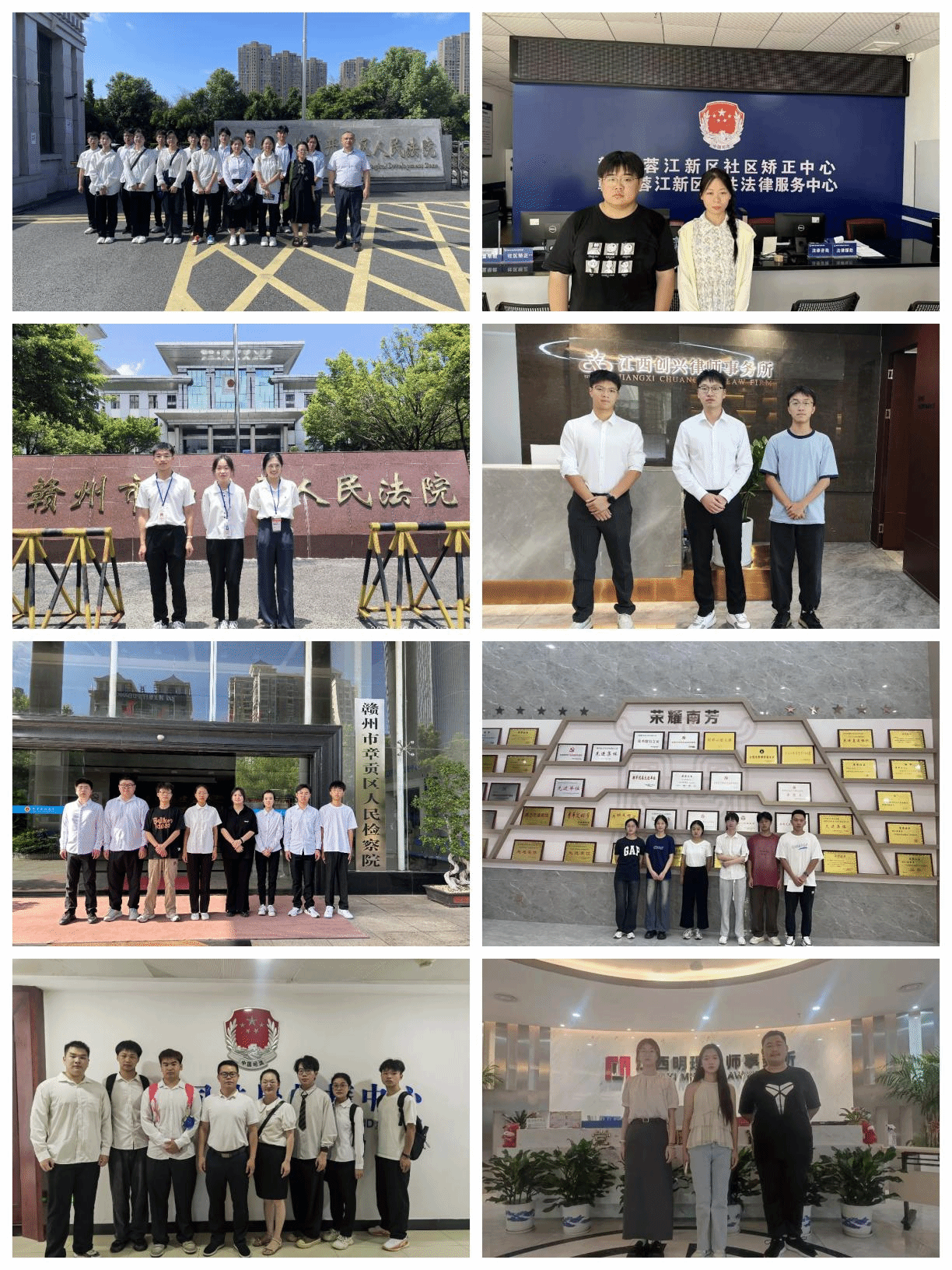 8月1日,我院2022级法学专业留赣实习学生在法学教研室主任刘翛然和法学骨干教师刘锦龙、龚云辉的带领下分别前往赣州市司法局、赣州市章贡区人民检察院、赣州市经济技术开发区人民法院、赣州市南康区人民法院、赣州市司法局、江西创兴律师事务所、江西南芳律师事务所、江西明理律师事务所进行为期一个月的暑期实习。