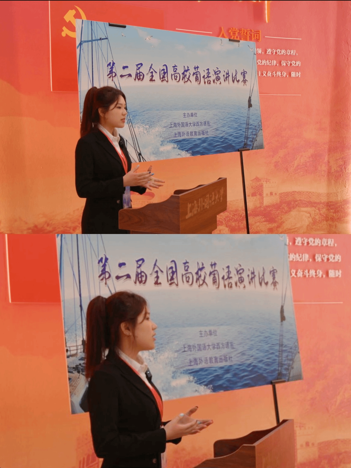 决赛环节由即兴演讲和现场问答两部分组成。在紧张而充满挑战的决赛现场,许雨晴同学以其清晰的逻辑、流畅的表达和独到的见解,成功征服了评委和现场观众。她的演讲不仅展现了个人的语言天赋,更是对我校葡语专业教学成果的一次精彩诠释。经过激烈的角逐,许雨晴同学最终获得优胜奖。