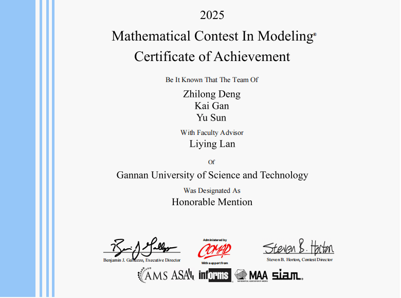 近年来,学校高度重视大学生学科竞赛与创新实践能力的培养,坚持“以赛促学,培育创新人才”的理念,持续优化教学资源配置,加强实践平台建设,着力提升应用型人才培养质量。本届参赛团队历经多个月的备赛,在指导教师团队的悉心指导下,反复打磨模型构建与论文撰写技巧,最终在国际舞台上交出亮眼答卷。