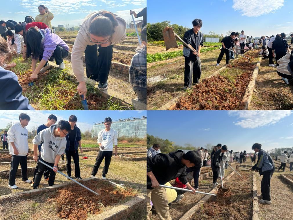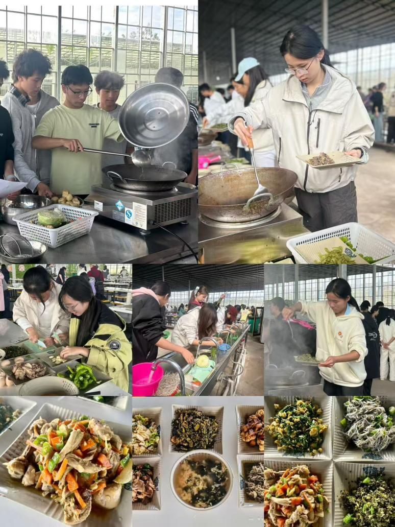 在基地授课老师的示范和指导下,同学们首先深入田间地头,从开荒到播种,每一步都亲手参与,他们手持铁锹、锄头等农具,在基地内忙碌起来。先将泥土疏松、清除杂草为播种做准备,再按照合理的间距栽种土豆,放入后覆土压实,并保持土壤湿润,接着施肥提供养分促进其生长。大家互相交流种植经验,现场气氛十分活跃。接着,到了午饭时间,大家自己动手,从田间食材到桌上佳肴,其中还得历经数种繁杂工序。同学们根据自身优势合理分工。在老师的指导下洗菜、切块,烧水、起火,蒸、炖、焖、炒……一切都有条不紊地进行,虽然有些动作略显生疏,但认真的模样十分可贵。餐后,大家主动清扫场地,洗碗洗锅,让劳动教育从烹饪延伸到责任担当。