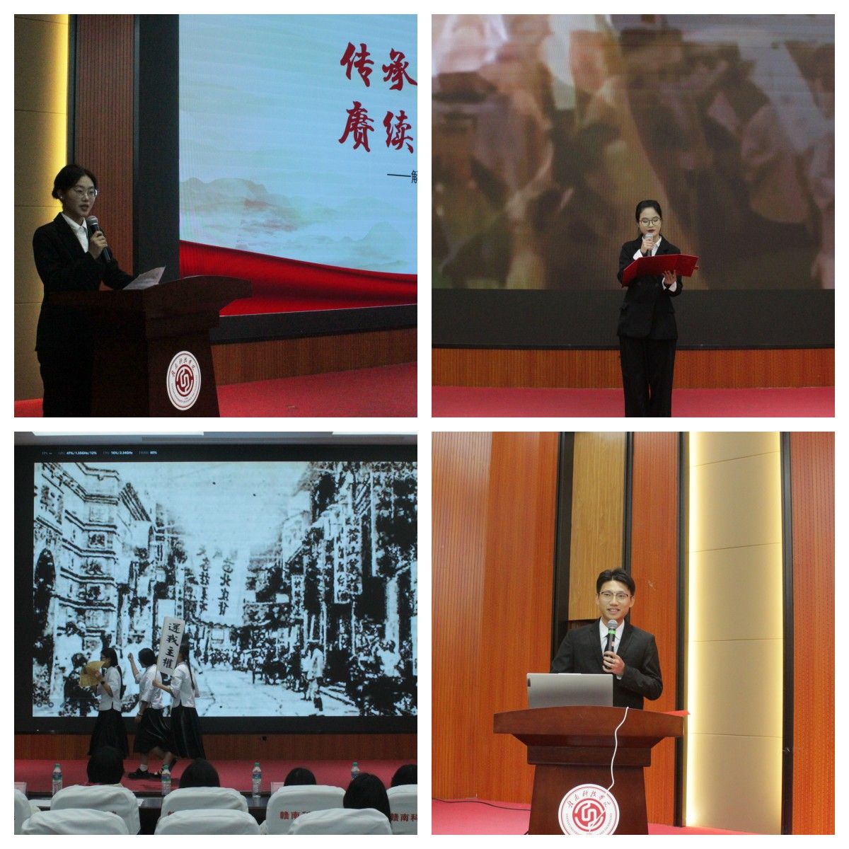 活动在庄严的氛围中拉开帷幕,分为“烽火回响 史诗重温”与“薪火相传 使命在肩”两大篇章。在第一篇章中,王敏杰同学围绕《传承红色文化,赓续精神血脉》展开主题学习,深刻阐释了红色文化的精神内涵与时代价值。随后,郑琦同学带来朗诵《民族的丰碑》,铿锵有力、情感真挚,将现场观众带回到那段波澜壮阔的抗战岁月。话剧《红土薪传:青春为中国式现代化挺膺担当》由施小雨、邱素芸、黄亚希等同学倾情演绎,展现了青年一代在新时代的奋斗姿态。诸葛荣铄同学的主题学习《青春心向党,筑梦新征程》进一步凝聚了青年共识,激励学子们坚定理想信念。互动环节“红色知识答题”气氛热烈,同学们积极参与,在答题中深化了对党史国史的理解。