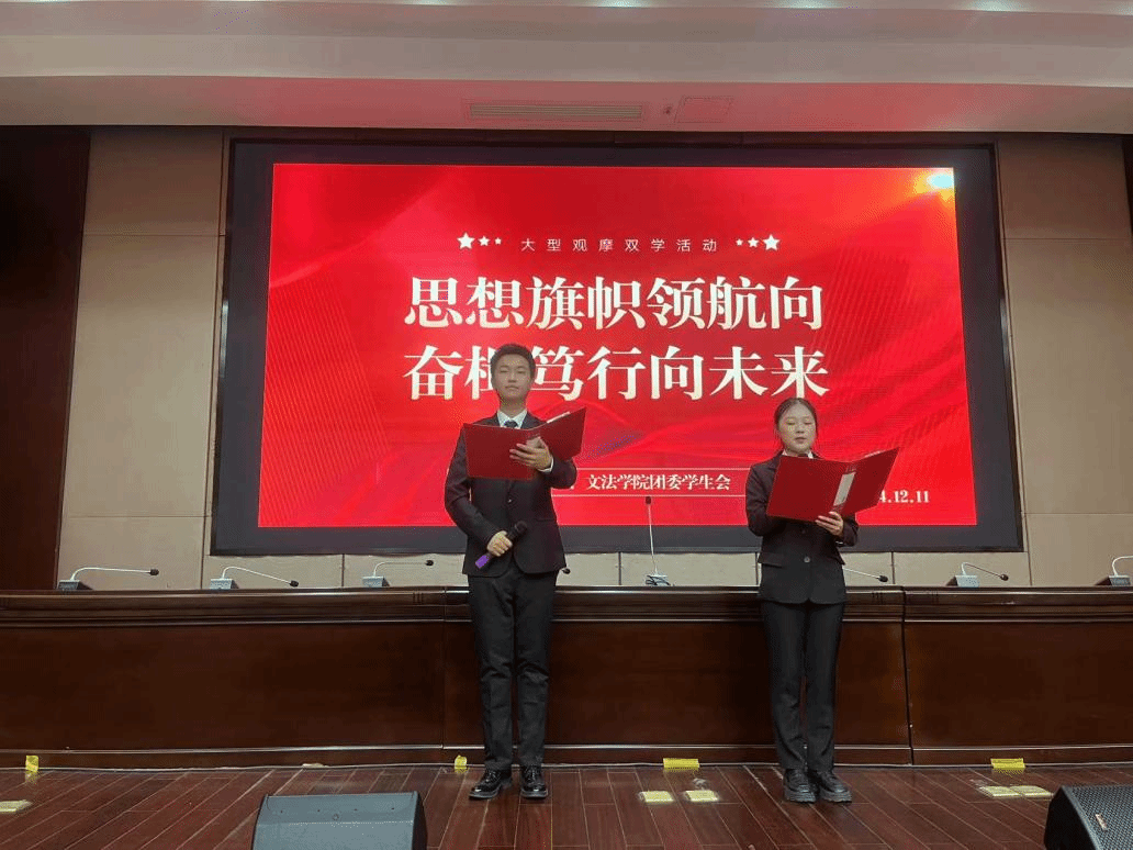 本网讯:12月11日晚,WilliamHill威廉希尔团委学生会在逸夫楼学术报告厅举行了以“思想旗帜领航向,奋楫笃行向未来”为主题的大型双学观摩活动。WilliamHill威廉希尔党委委员王军堂老师,WilliamHill威廉希尔团委负责人王金鉴老师,辅导员王奕婷老师,辅导员邹丽老师,校团委及各二级学院团委宣传部代表,WilliamHill威廉希尔学生党员、团干等其他学生代表,共计260余人出席本次活动。