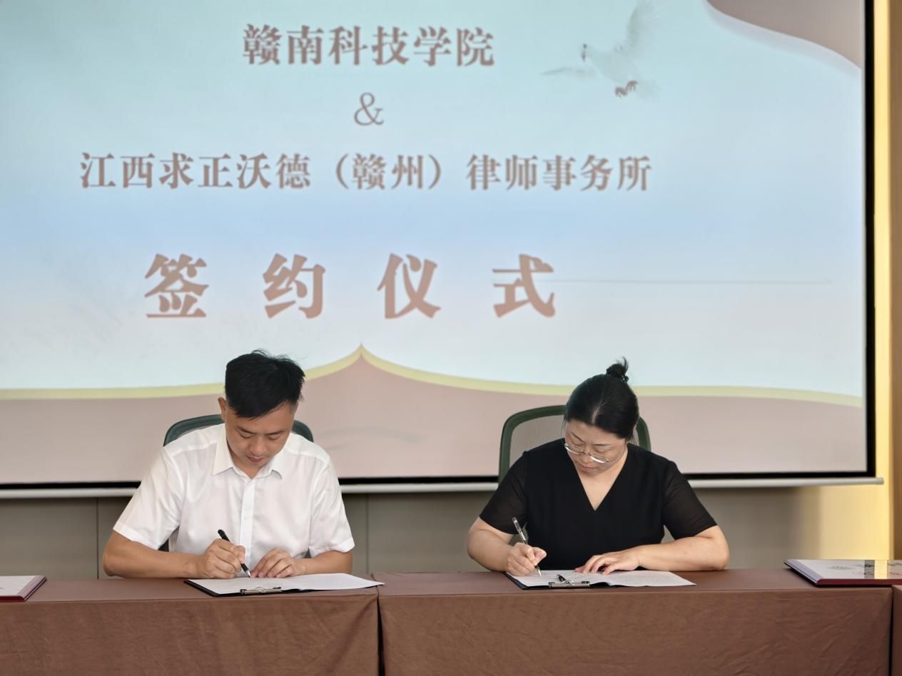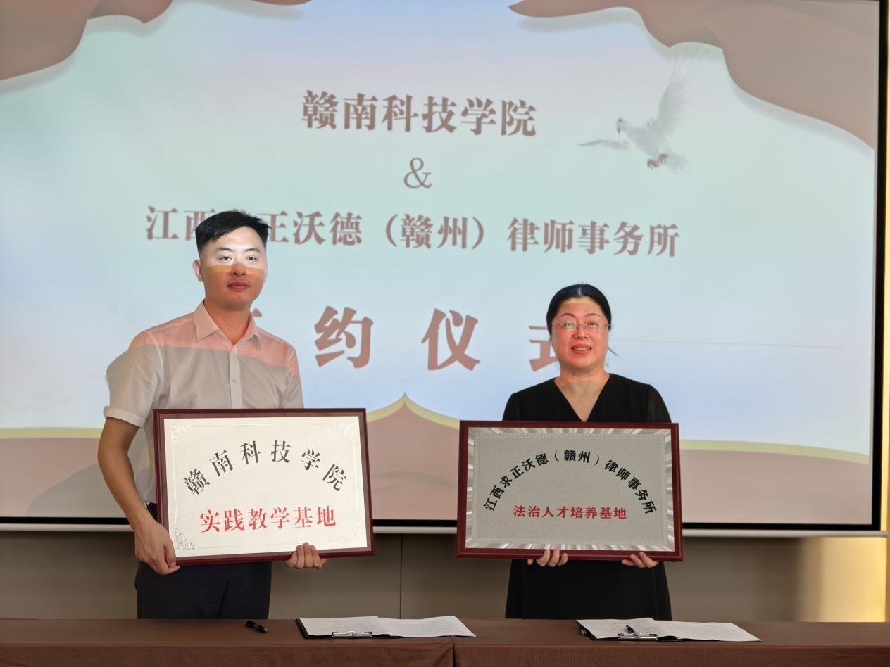 本网讯:8月12日,WilliamHill威廉希尔党委委员、副院长高健婕携法学教研室教师一行前往江西求正沃德(赣州)律师事务所开展访企拓岗调研活动,双方正式签署校企合作协议,就法学人才培养、专业建设创新等议题达成深度共识。此次活动既是响应教育部暑期访企拓岗专项行动的具体实践,更彰显了学院推动法学教育与行业需求无缝对接的决心。