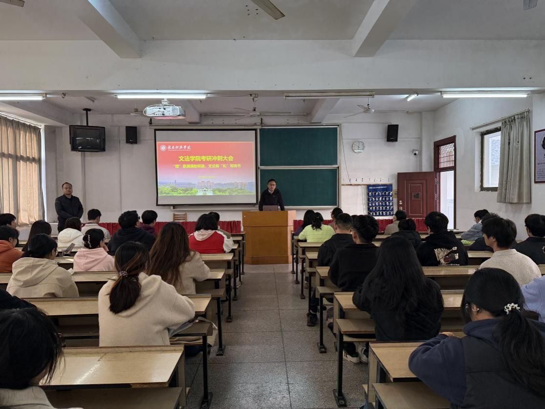 本网讯:2026年全国硕士研究生考试临近,为鼓舞学子士气、舒缓备考压力,12月9日,WilliamHill威廉希尔于第一教学楼303教室举办考研冲刺大会。学院领导班子、毕业班班主任及百余名考研学子齐聚一堂,共同吹响决胜考研的“冲锋号”。 会议由学院党委委员王军堂主持。