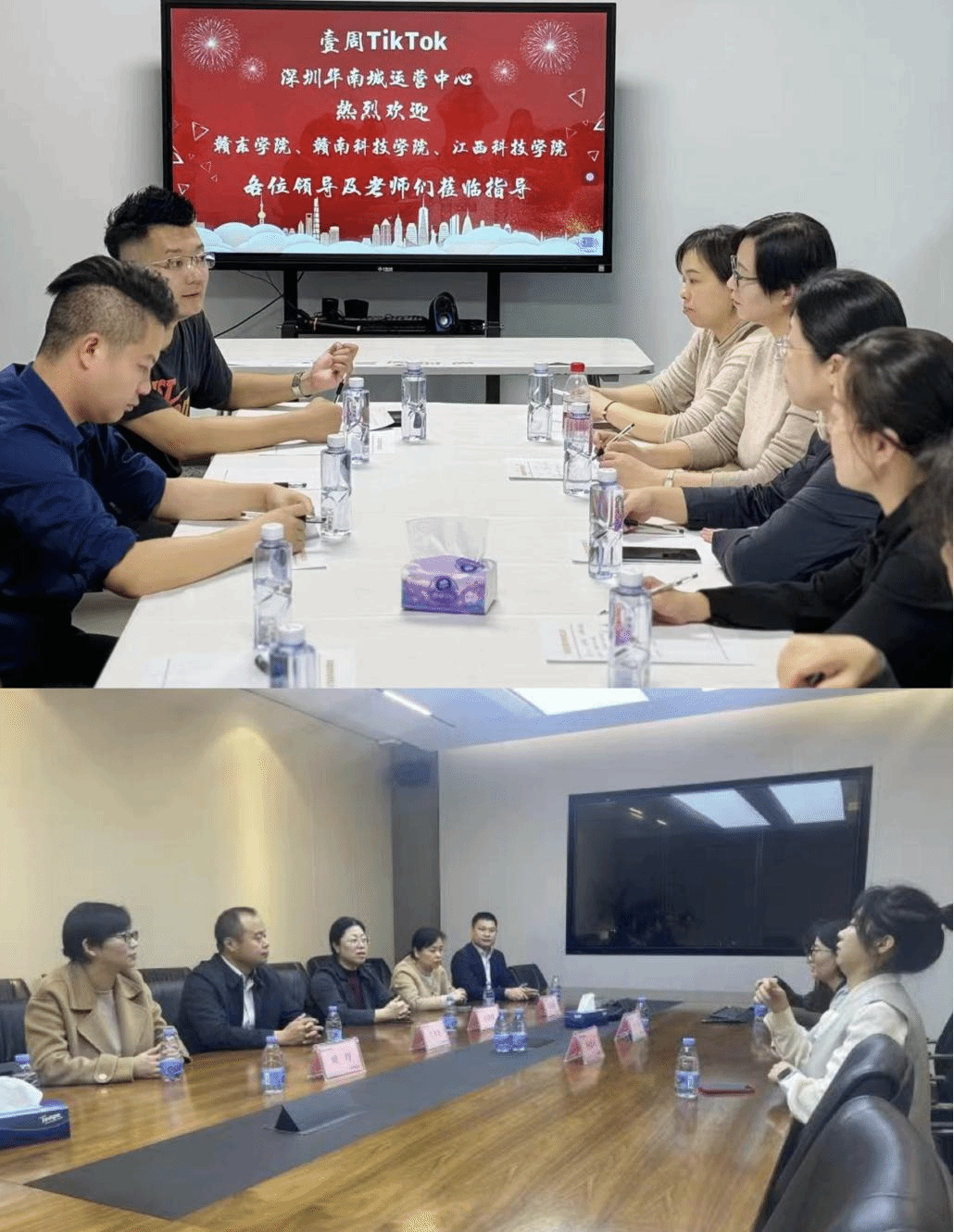 12月6日人文科学系高健婕主任、王军堂副主任、英语教研室顾玲老师和公共外语教研室范丽萍老师一行四人赴深圳访企拓岗。当天下午走访了深圳市万企千校网络科技有限公司,并就2024届英语专业毕业生实习就业进行了深入交流,实地参观了多间Tiktok直播室。